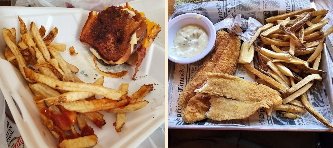 Try the Soup of the Day and Cheese Balls for a quick fix. The Grandmas Peanut Butter Pie is a must for dessert. Many guests love the Poutine and Spicy Cheddar Cauliflower.