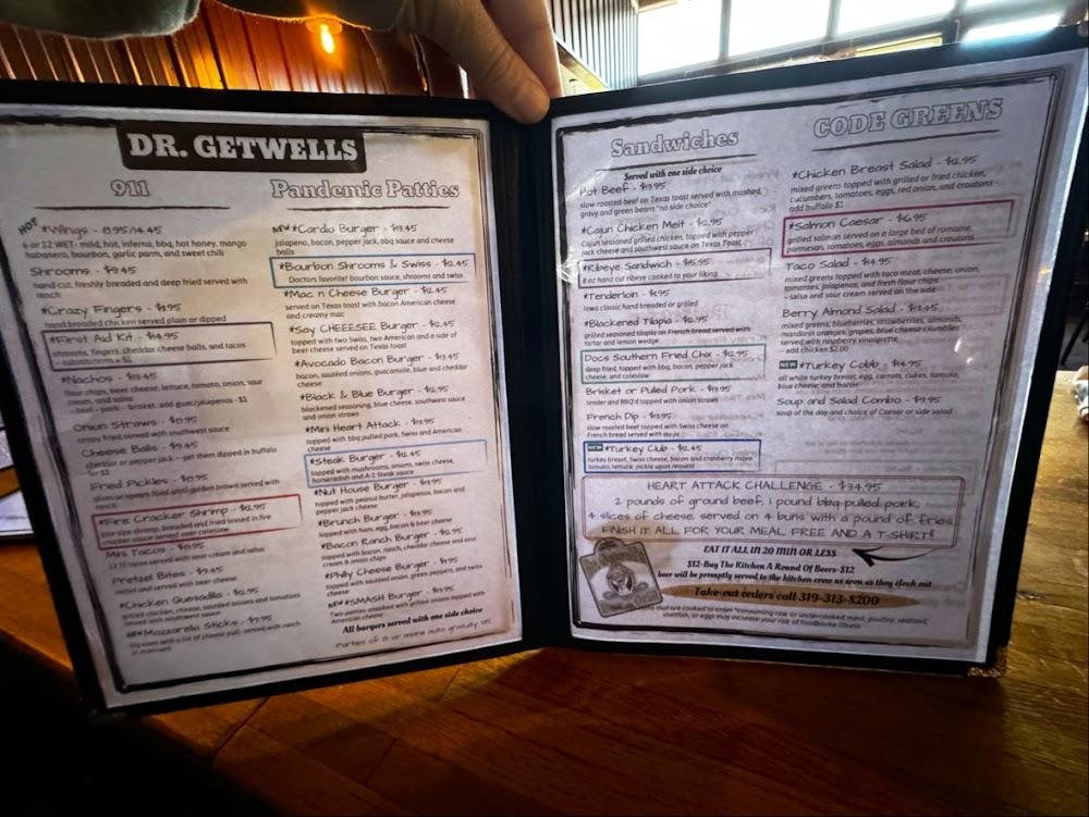 Welcome to Dr. Getwell's Bar & Grill, your go-to spot for great food and good drinks in Keokuk! Located at 1100 Main St, we pride ourselves on offering a lively atmosphere with late-night service. Enjoy a diverse menu featuring local specialties, excellent cocktails, and a vast selection of beers. Join us for fun events like live concerts, karaoke nights, and quiz shows. With options for dining in, takeout, and contactless delivery, we cater to everyone. Plus, our venue is wheelchair accessible, ensuring everyone can join the fun. Come experience the vibrant local scene and "Getwell" with us!