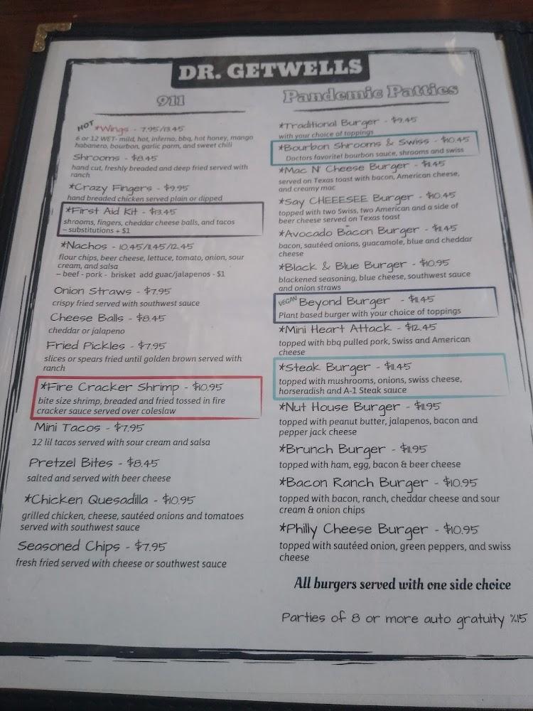 Dr. Getwell's offers a diverse menu focused on comfort food and traditional favorites. From the quick-fix category that includes spicy cheddar cauliflower to mouthwatering wings, there's something for everyone to enjoy.